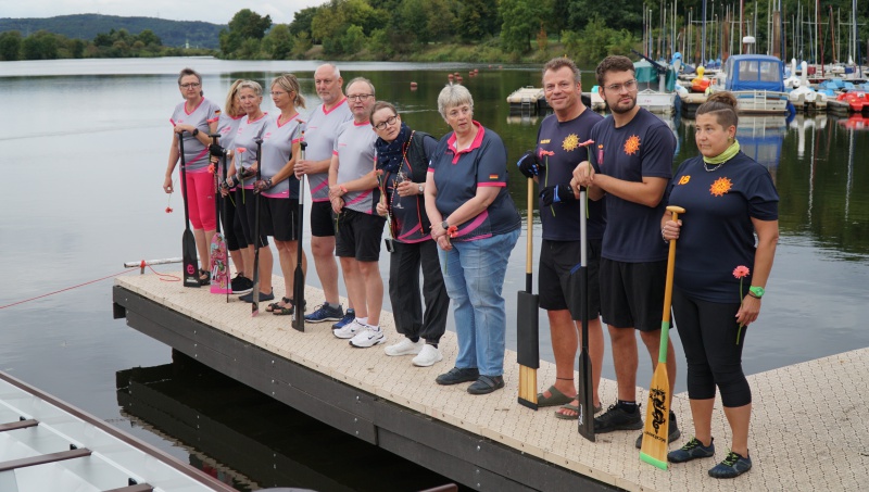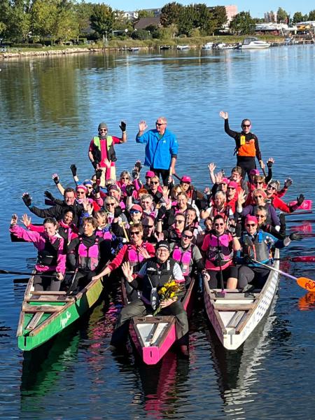 Unser Pink Paddler Projekt beinhaltet das Paddeln mit brustkrebsüberlebenden Frauen und auch Männern.